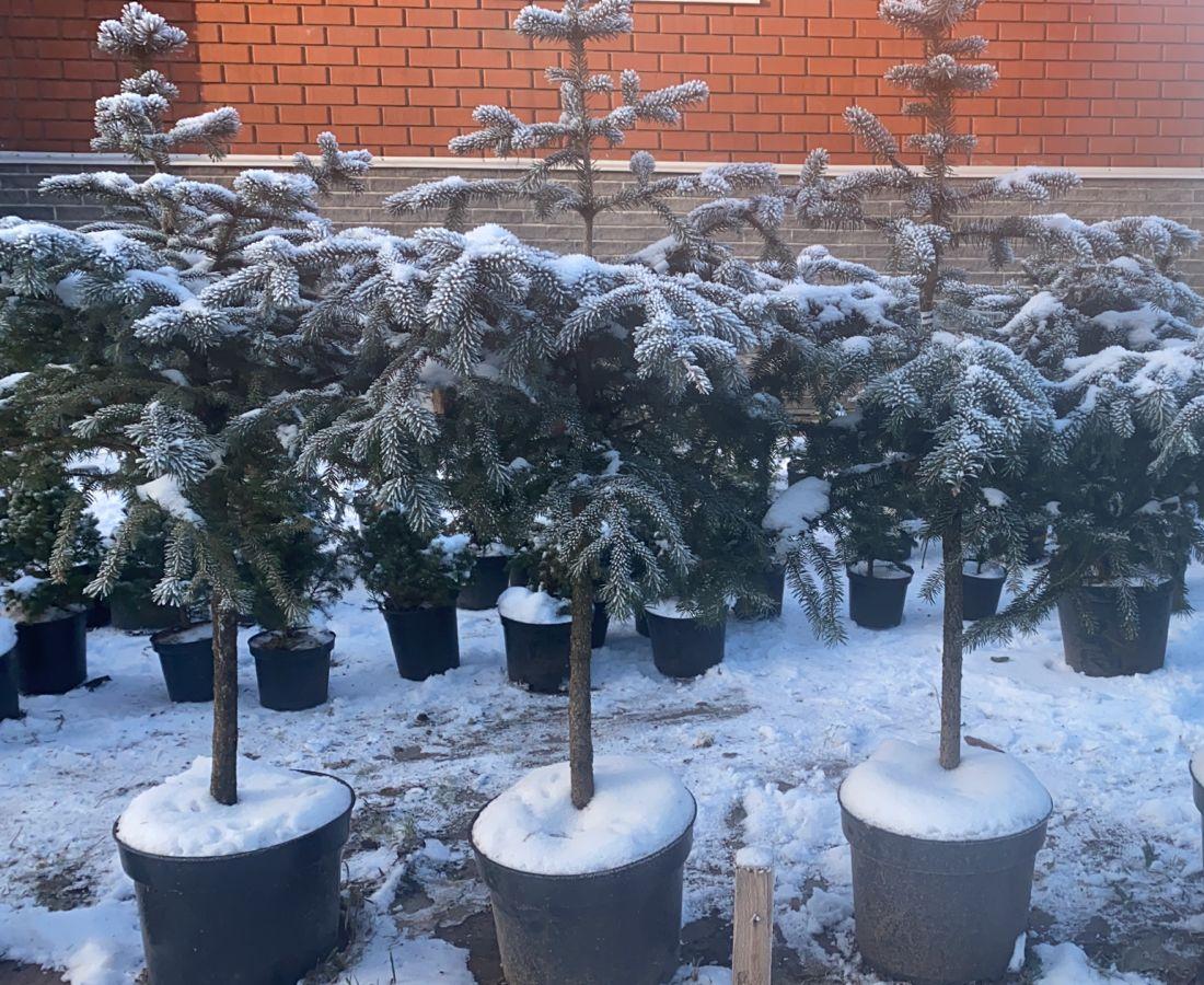 Елка живая новогодняя Глаука в горшке (Штамб 60-80 см + Прививка 100-120 см, C25)
