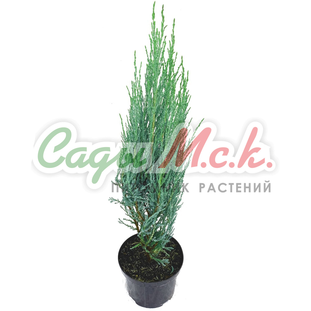 Можжевельник скальный Блю Арроу - высокий хвойный кустарник с очень узкой, колоновидной кроной. Жесткие, вертикально растущие, плотно прижатые к стволу побеги, прирастают примерно 15 см в год. В 10-летнем возрасте растение достигает 2-2,5 м в высоту и 0,5-0,7 м в диаметре