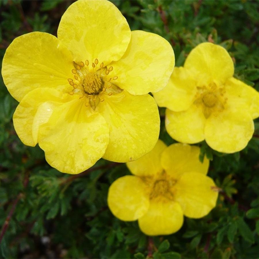Лапчатка Sommerflor - густой плотный кустарник с прямыми побегами, достигающий 0,6-0.8 м высоты, в ширину до 1м. Листья сизо-зеленые, мелкие. Цветки золотисто – жёлтые, крупные. Цветёт сорт обильно и бесперерывно с июня вплоть до сильных заморозков. Зимостойкость высокая.