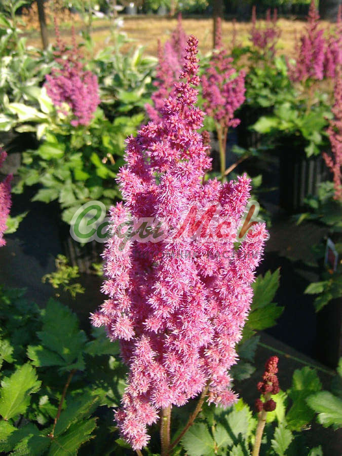 Саженцы астильбы Burgundу Rеd украсят собой любую клумбу, ведь метельчатые темно-красные соцветия этого сорта являются универсальным дополнением для любой цветочной композиции. Глянцевые темно-зеленые листья эффектно сочетаются с красноватыми стеблями, благодаря чему даже до и после цветения эта астильба смотрится весьма привлекательно. Саженцы этого сорта размещайте в полутени или в зонах разряженной тени. Они очень чувствительны к сухому воздуху, поэтому почва должна быть хорошо увлажнена.