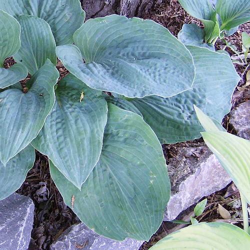 Хоста Big Mаmа – гибридное многолетнее растение с очень крупными, округлыми, слегка вытянутыми, сердцевидными листами. Собранные в прикорневые розетки, они образуют раскидистые кусты огромных размеров, которые при благоприятных условиях произрастания могут достигать метровой высоты. Многолетник выделяется особенной декоративностью листьев: темно-сине-зеленые, гофрированные, с четко выделяющимися глубокими жилками, образующими неповторимый узор на листовых пластинах. На их фоне особенно трогательно выглядят светло-фиолетовые, колокольчатые цветы, появляющиеся в конце августа. Сорт не переносит длительную засуху, лучше растет на рыхлых, слегка увлажненных и плодородных почвах, а в полутени будет выглядеть потрясающе красиво.