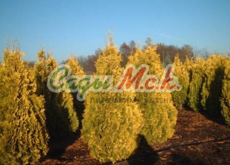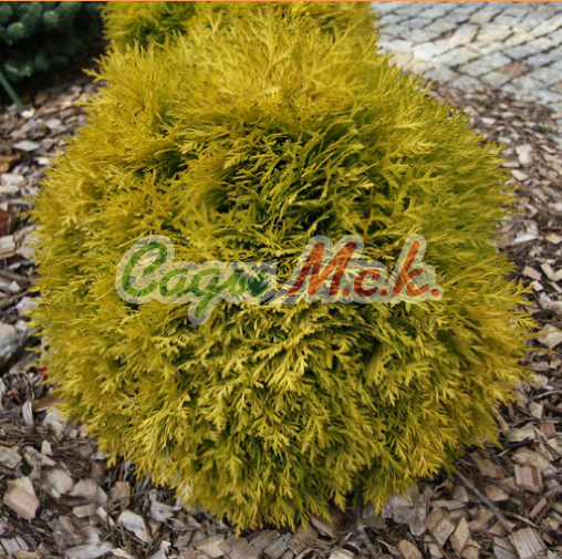 Туя западная "Рейнголд" (Thuja occidentalis Rheingold) - медленнорастущий густой кустарник, достигающий около 130 см высоты. В молодом возрасте форма кроны шаровидная, позже — яйцевидная. Хвоя интенсивно-желтой окраски, зимой коричневая. Ветви тонкие, диморфные, частично игольчатые, частично чешуевидные.